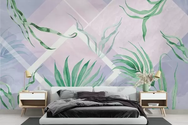 Fotomurales Exuberante vegetación sobre un suave fondo pastel Nr. w01625