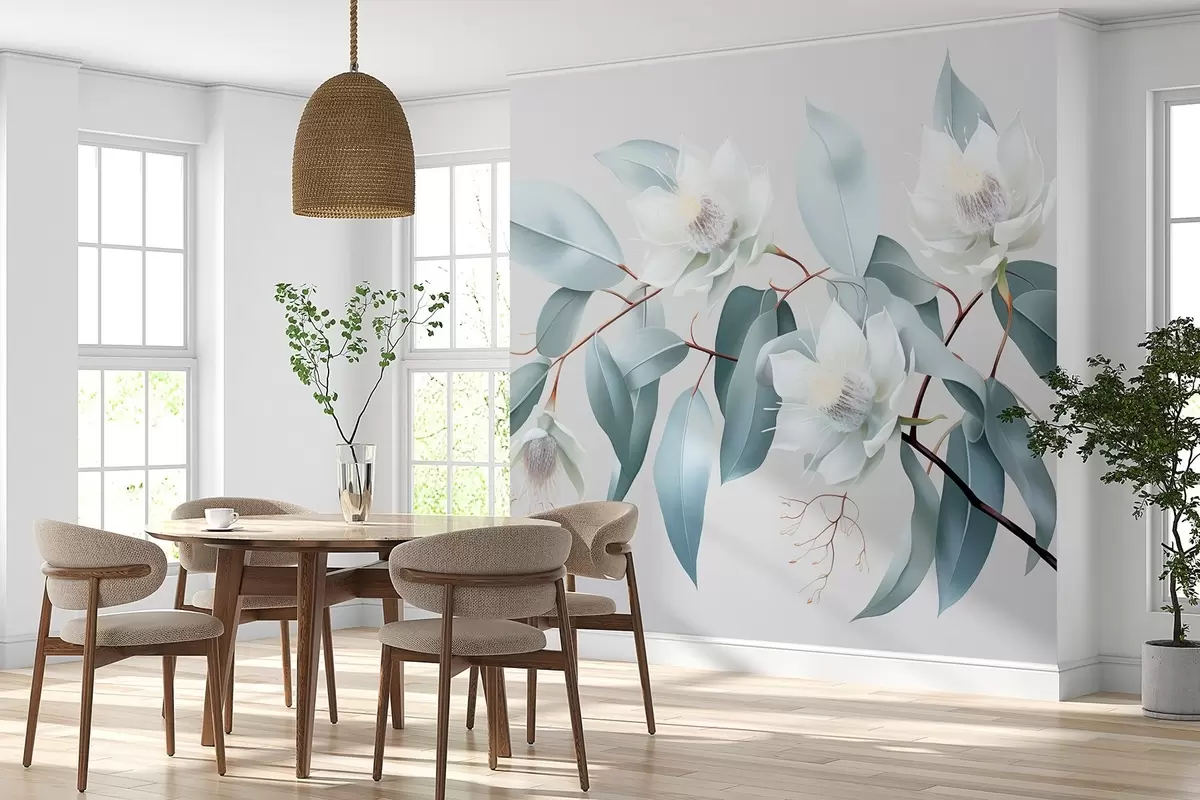 murales de pared Flores de jazmín en la rama, acrílico, colores grises suaves w01885