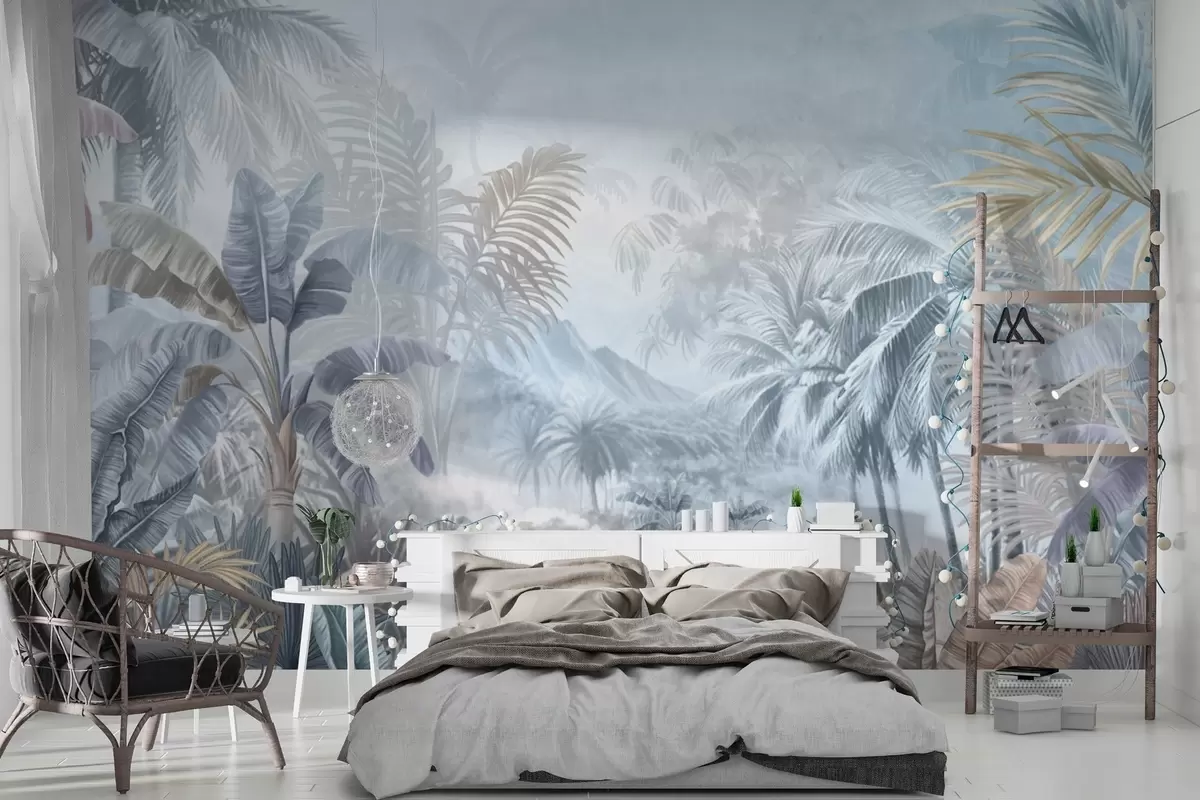 Fotomurales Selva tropical en suaves tonos azules Nr. w01931