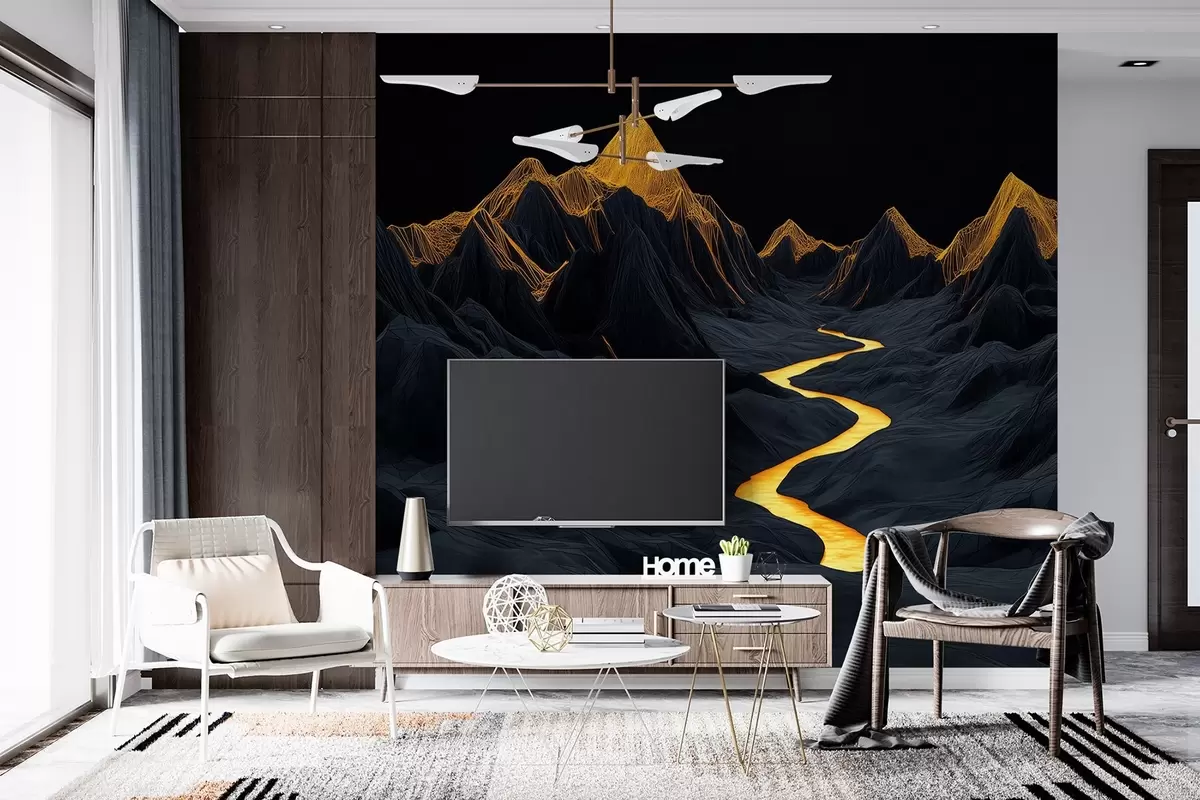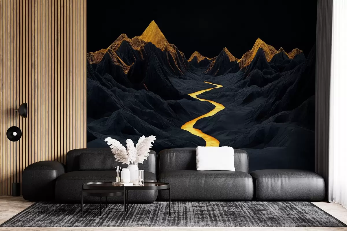 Fotomurales Paisaje poligonal negro y un río entre las montañas Nr. w02063
