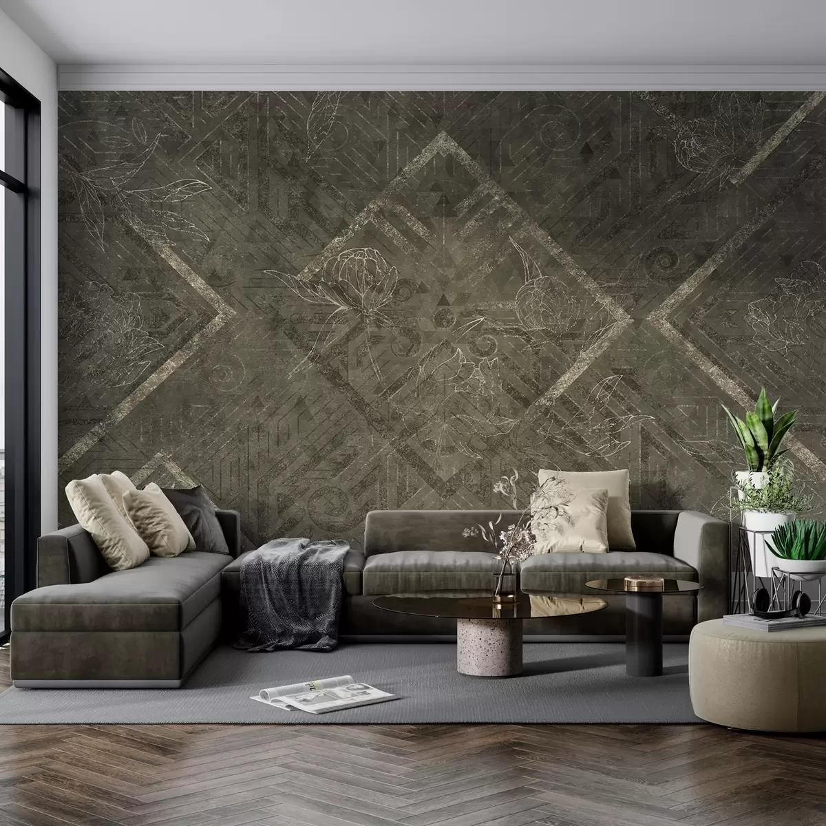 Fotomurales Textura grunge con motivos florales en color amarillo Nr. w02079