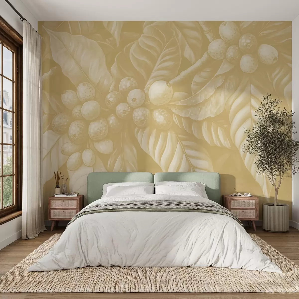 Fotomurales Ramas de cafeto con frutas y elementos tropicales en tonos beige Nr. w02209v1