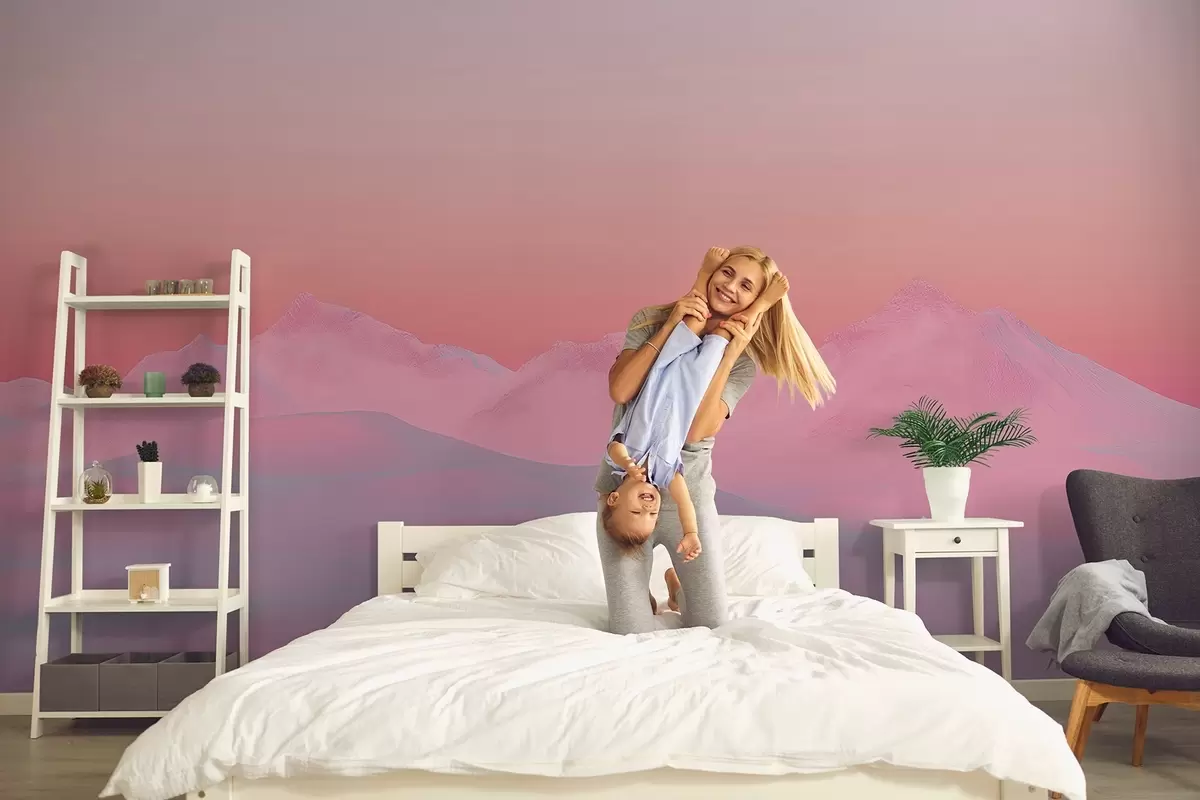 Fotomurales Suave puesta de sol frambuesa con las montañas y el cielo como telón de fondo Nr. w02234