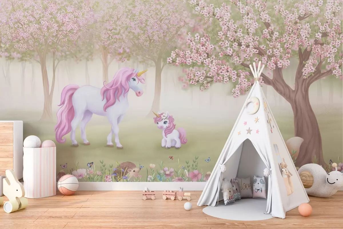 Fotomurales Unicornios en un bosque mágico con animales Nr. w02269