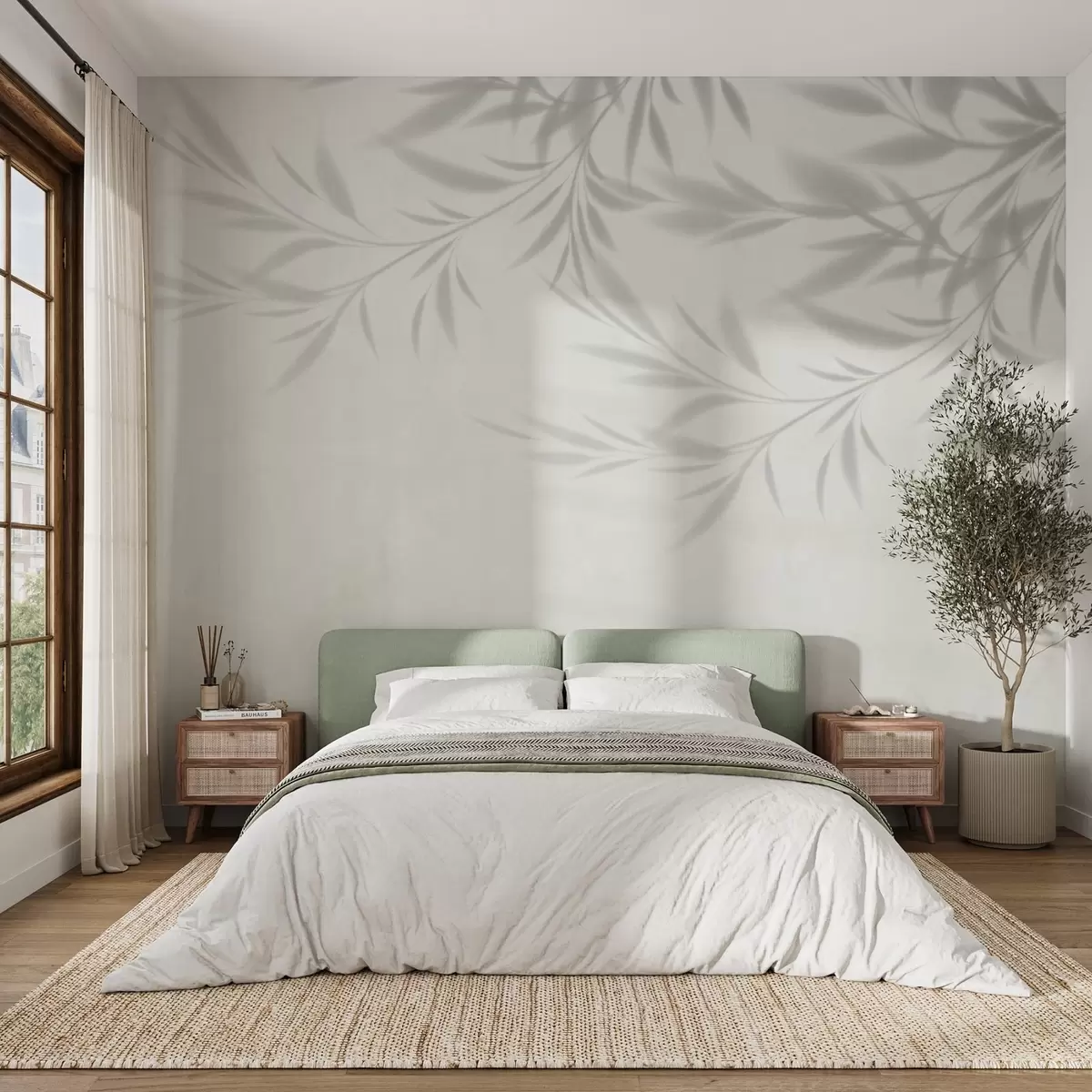 Fotomurales Sombra de ramas y hojas sobre fondo de olivo Nr. w02283