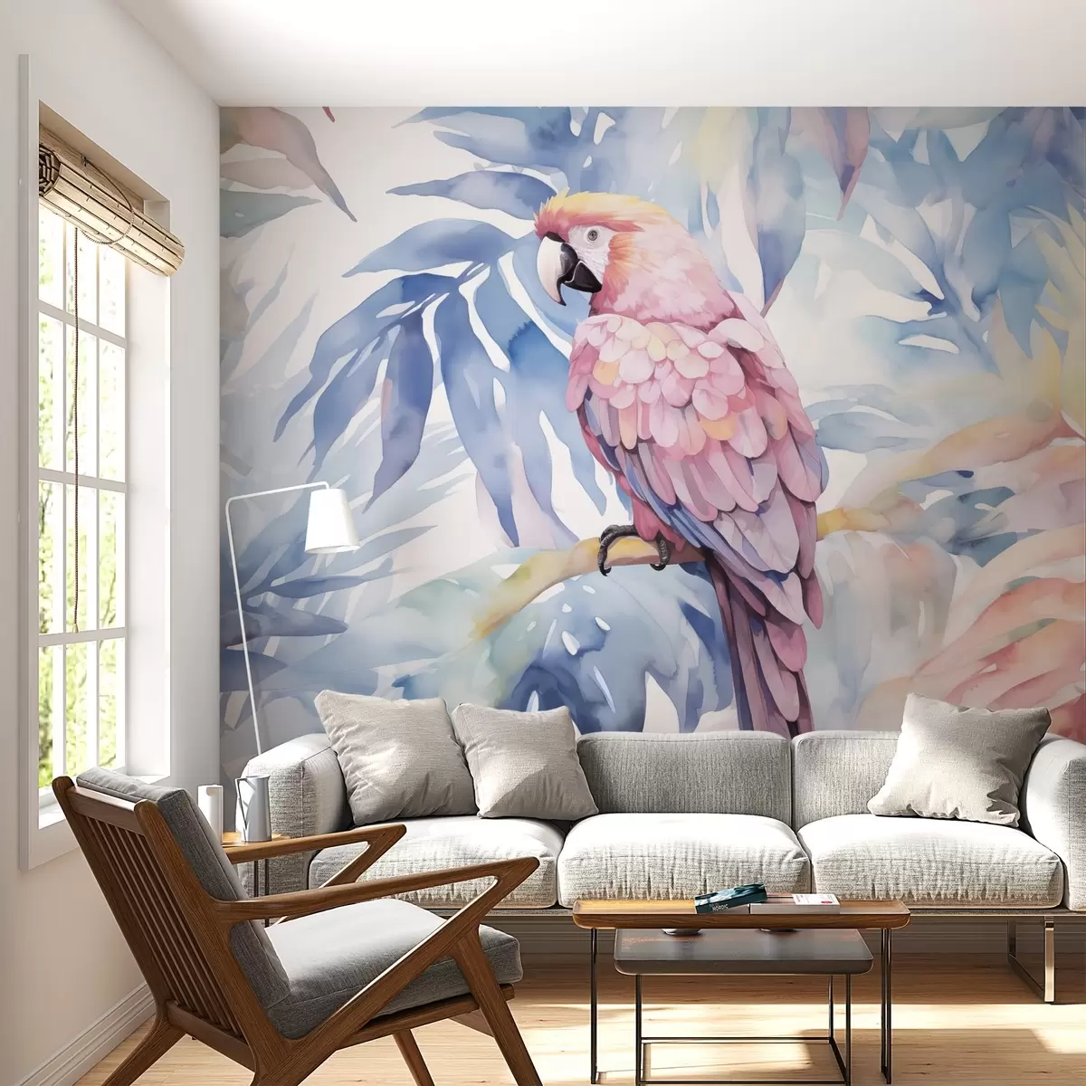murales de pared Loro rosa sentado en una rama imitación de pintura w02330