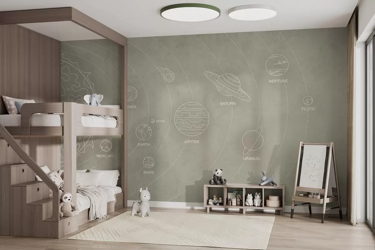 Fotomurales Sistema solar de estilo minimalista sobre un fondo de textura beige Nr. w02344