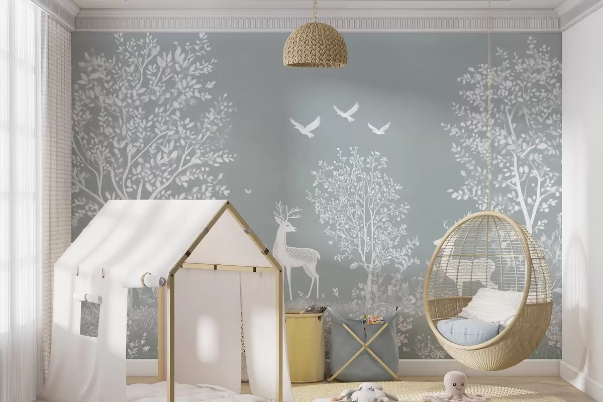 Fotomurales bosque con ciervos en el estilo de un dibujo de tiza sobre un fondo gris Nr. w02444v2