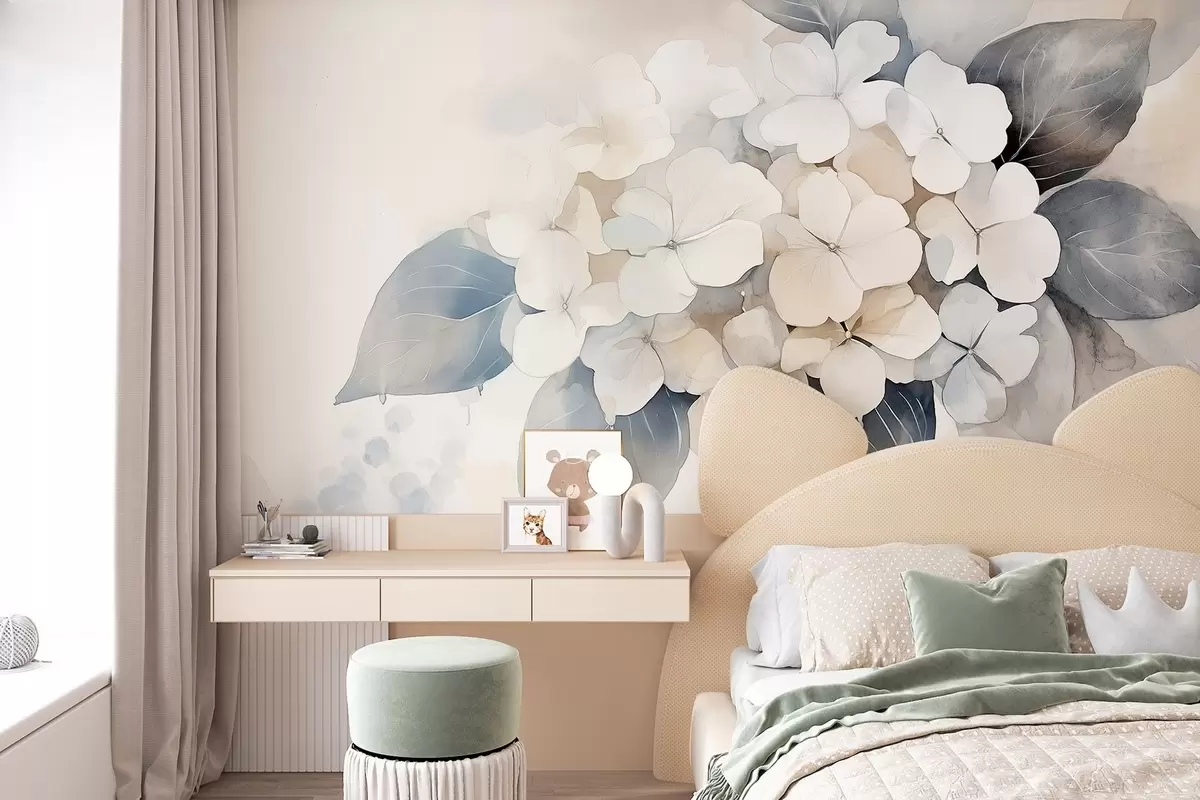 murales de pared Flor de hortensia, colores suaves, estilo acuarela w02491