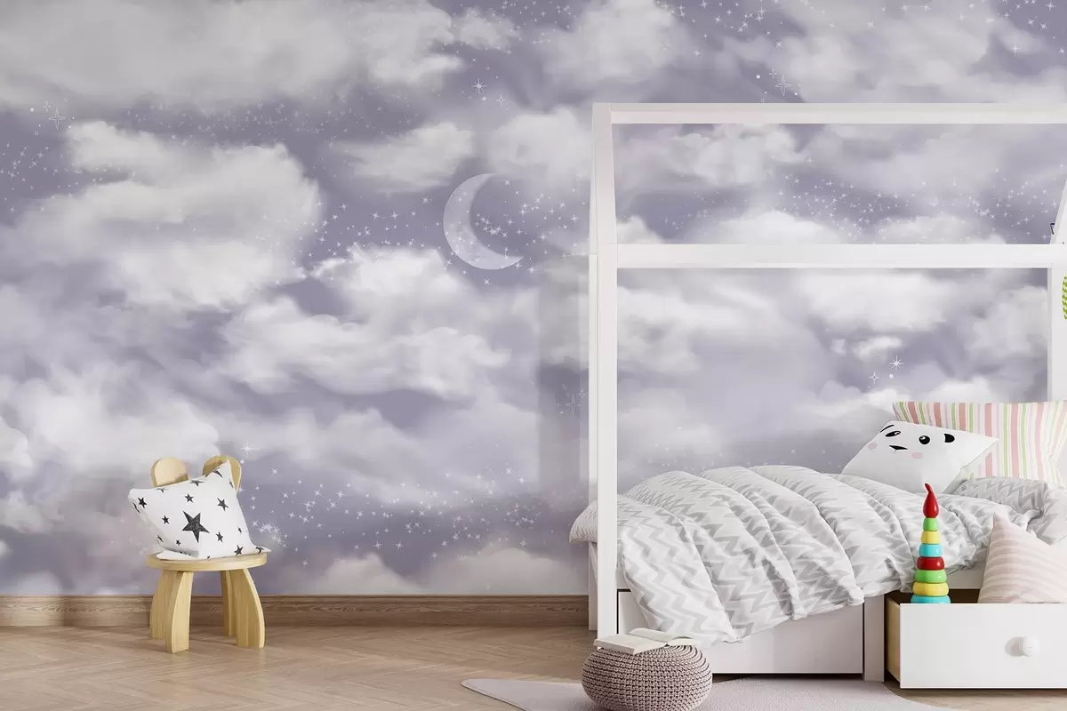 Fotomurales Cielo estrellado con luna y nubes, de ensueño, etéreo, suaves colores morados Nr. w02515v4