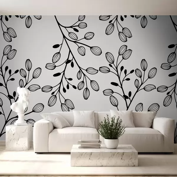 Fotomurales ramitas pintadas sobre fondo gris Nr. w02665v1