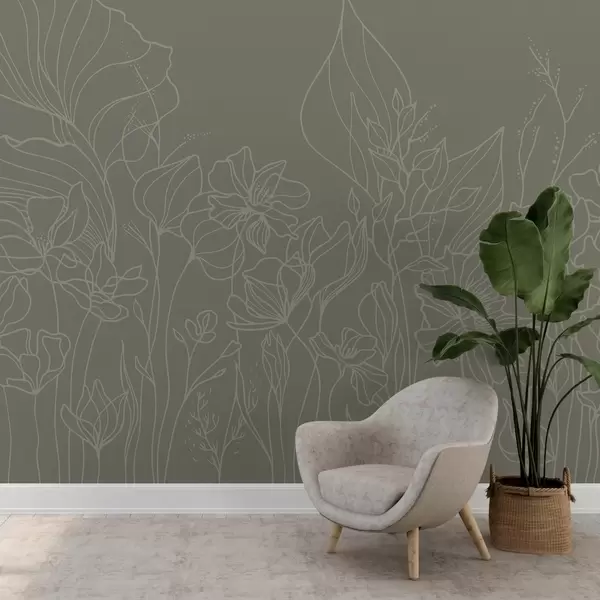 Fotomurales Elegante arte lineal floral sobre fondo verde Nr. w02773v3
