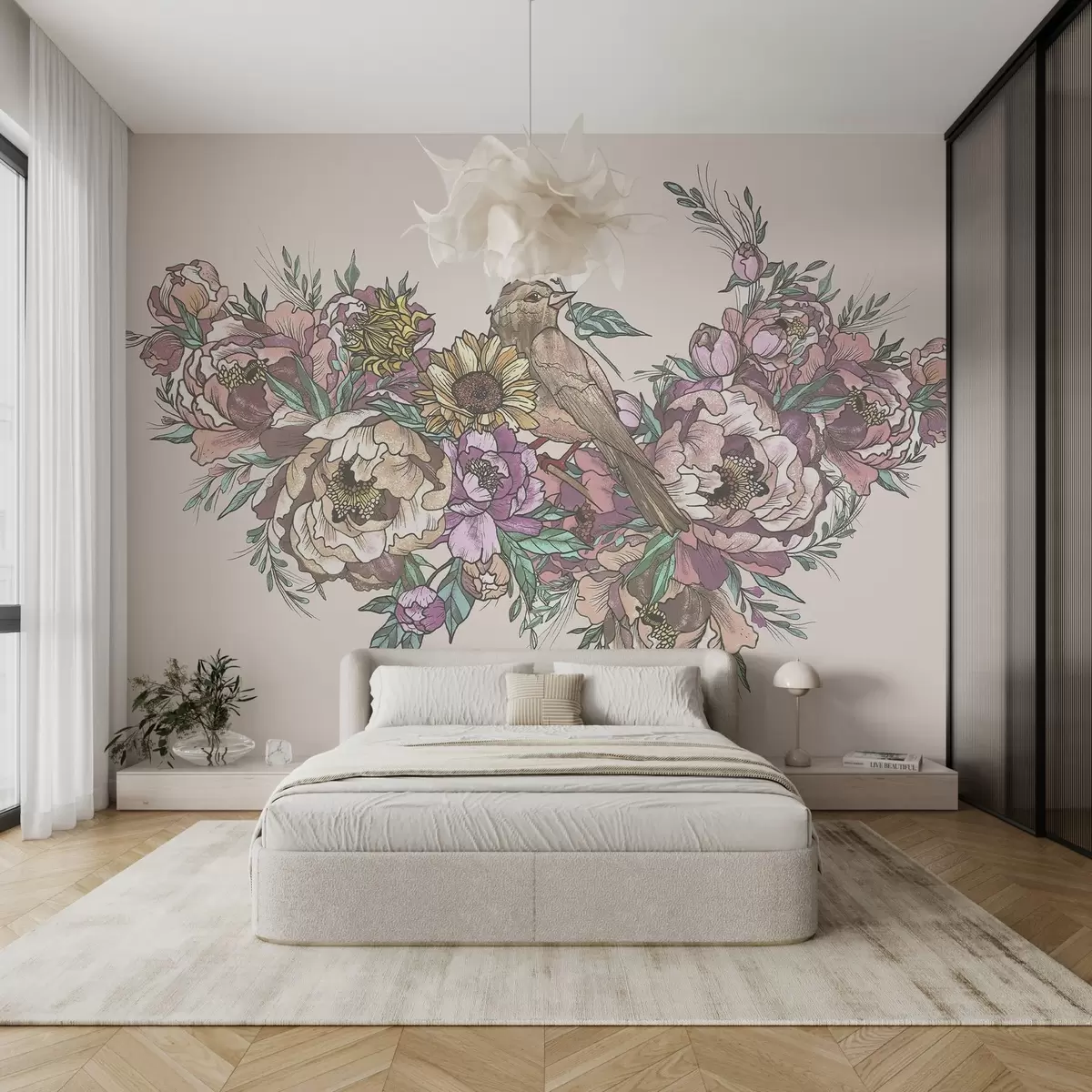 Fotomurales Ilustración floral y de pájaros vintage Nr. w02833