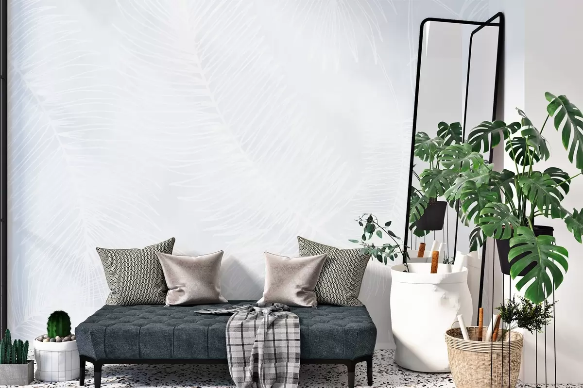 Fotomurales Siluetas de hojas blancas sobre fondo texturizado Nr. w02894v1