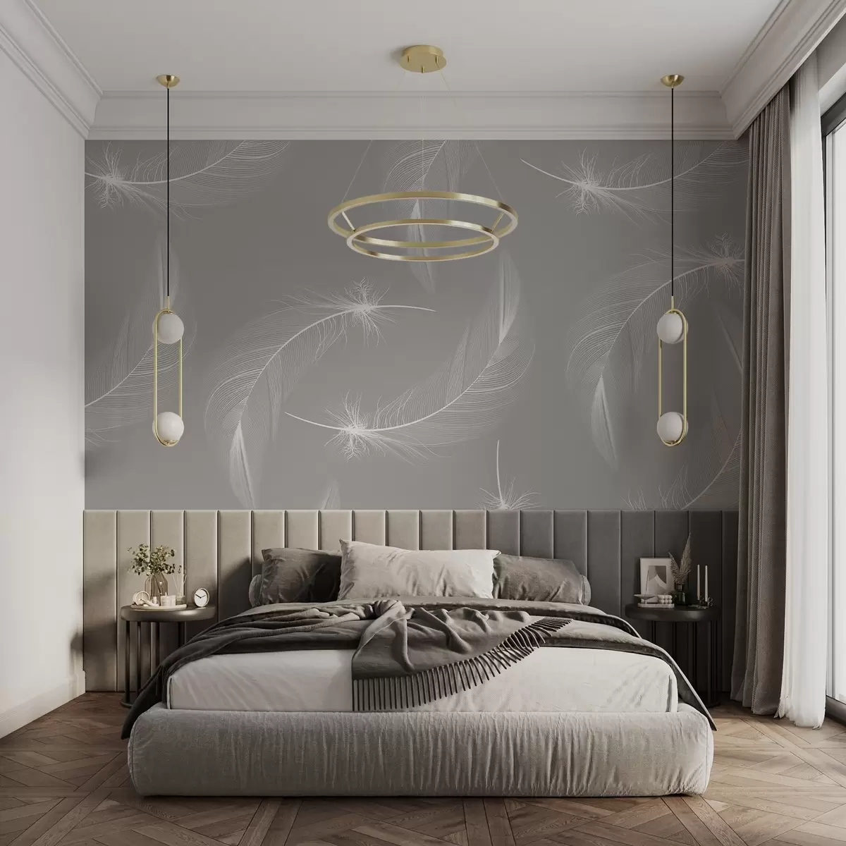 Fotomurales Plumas sobre fondo gris, plumas blancas claras Nr. w03043v1