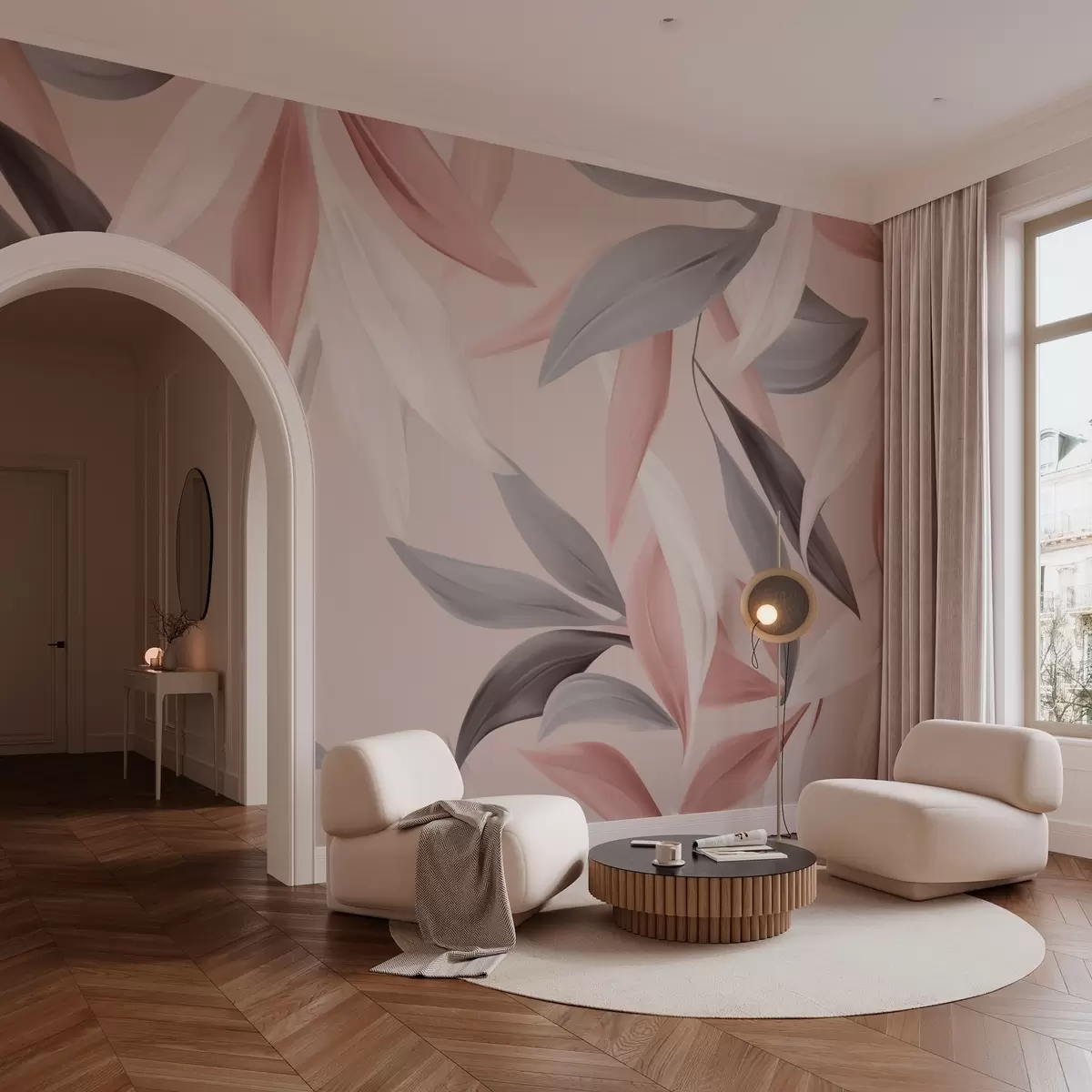 Fotomurales Delicadas hojas tropicales en tonos rosados Nr. w03123