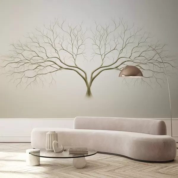 Fotomurales Imagen minimalista de un árbol con delicadas ramas sobre fondo beige claro Nr. w03159v2