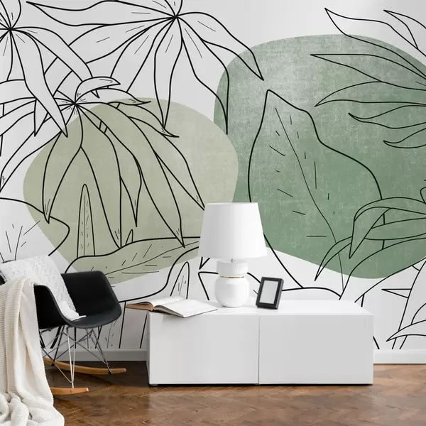 Fotomurales Plantas en líneas sobre un fondo de manchas, tonos verdes Nr. w03278v2