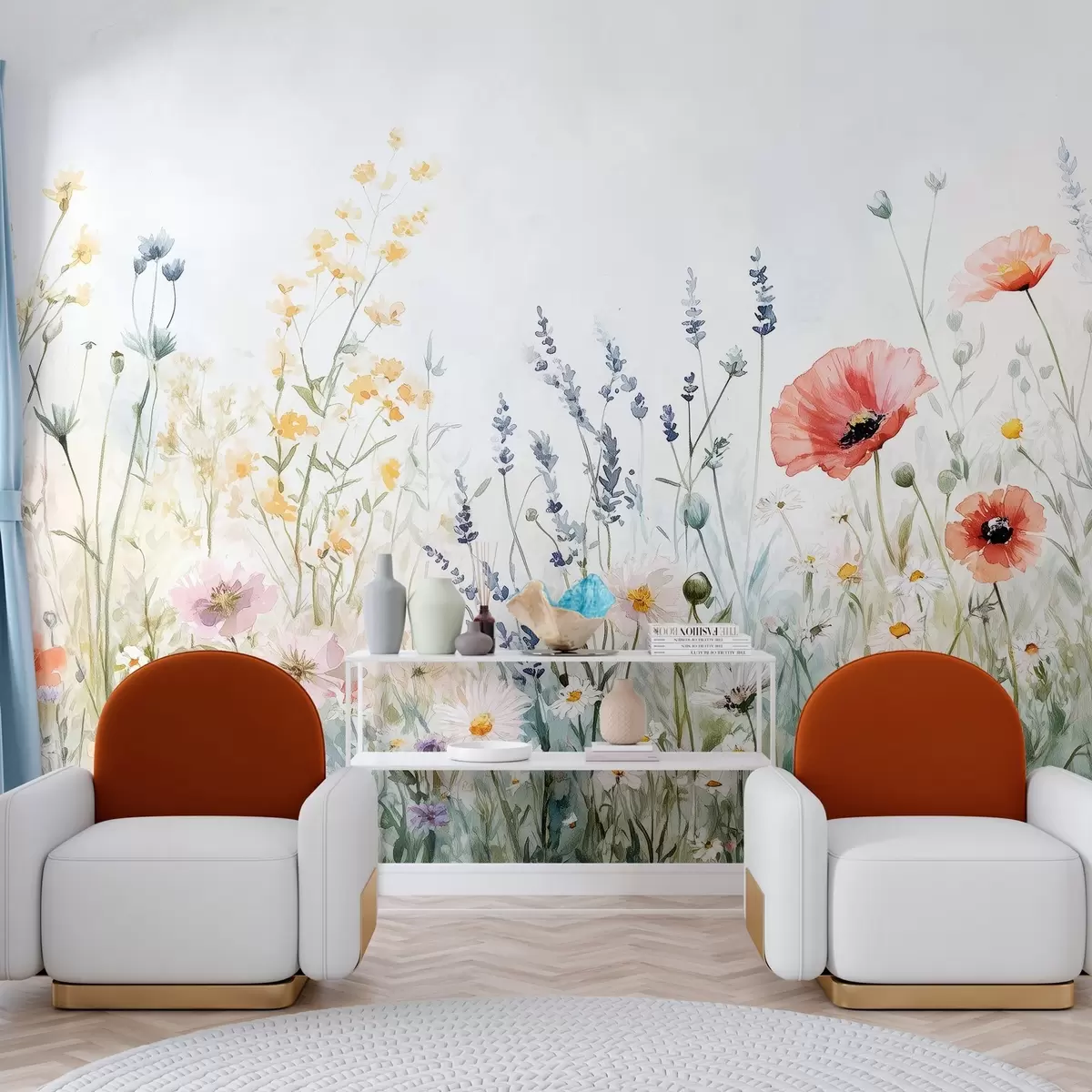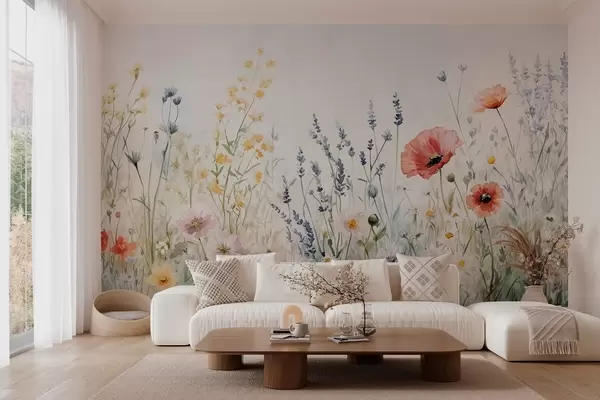 Fotomurales flores silvestres y amapolas en la técnica de los trazos Nr. w03281