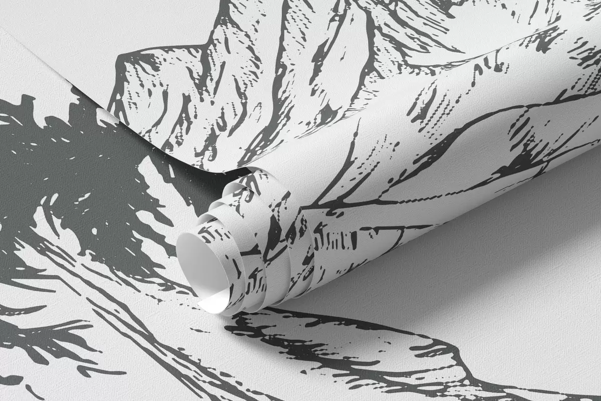 Fotomurales Paisaje de montaña con pinos, bosque, naturaleza, color gris oscuro Nr. w03344