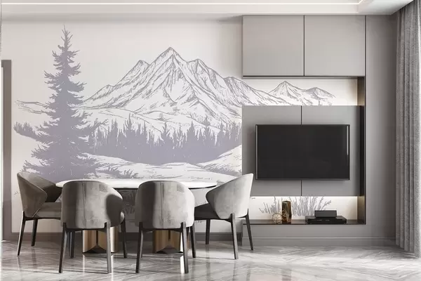 Fotomurales Paisaje de montañas con pinos, bosque, naturaleza, suave color púrpura Nr. w03344v2