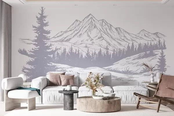 Fotomurales Paisaje de montañas con pinos, bosque, naturaleza, suave color púrpura Nr. w03344v2