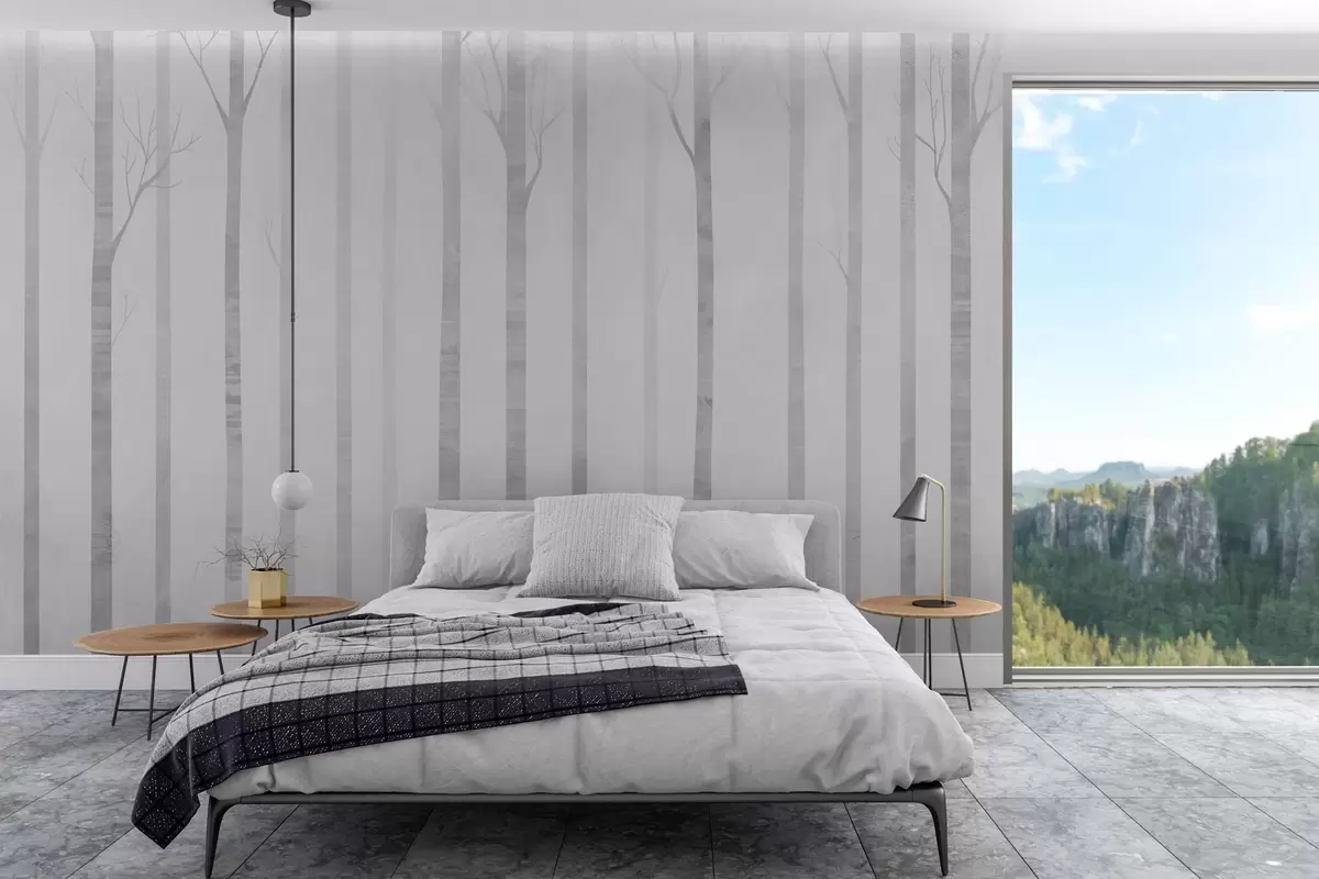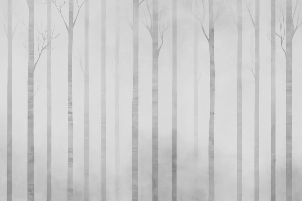 Fotomurales Troncos de árbol en la niebla en escala de grises Nr. w03386