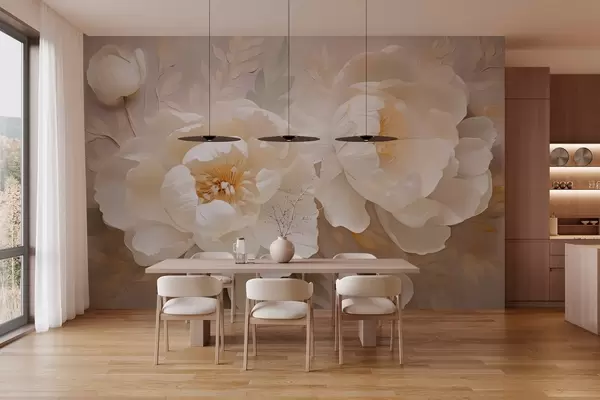 Fotomurales Flores de peonía en flor de color beige claro Nr. w03390
