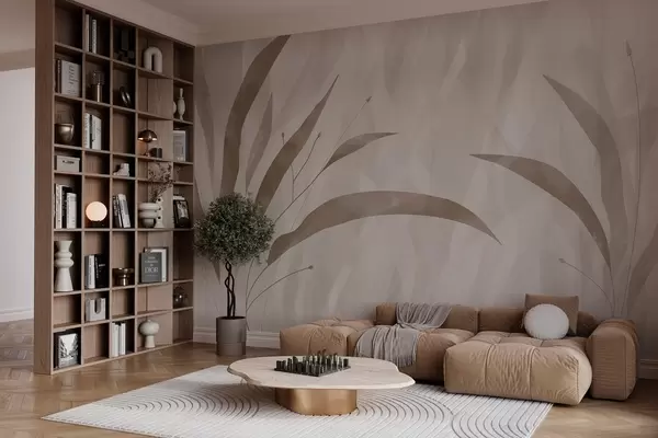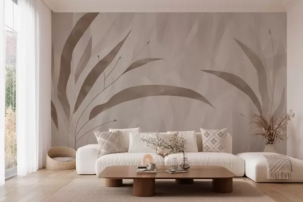 Fotomurales Estilo ecológico, plantas sobre un fondo heterogéneo texturizado en tonos beige Nr. w03394