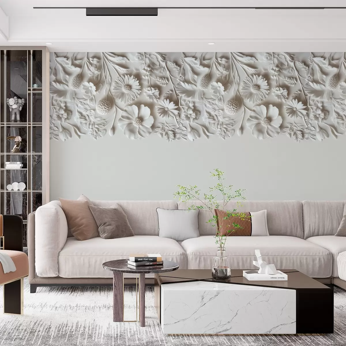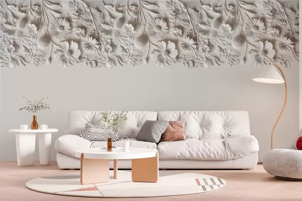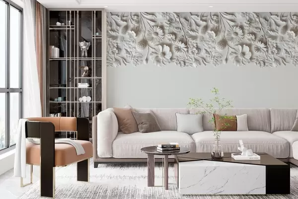 Fotomurales Imitación de flores en bajorrelieve en la parte superior en color leche Nr. w03398v1