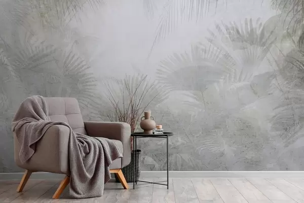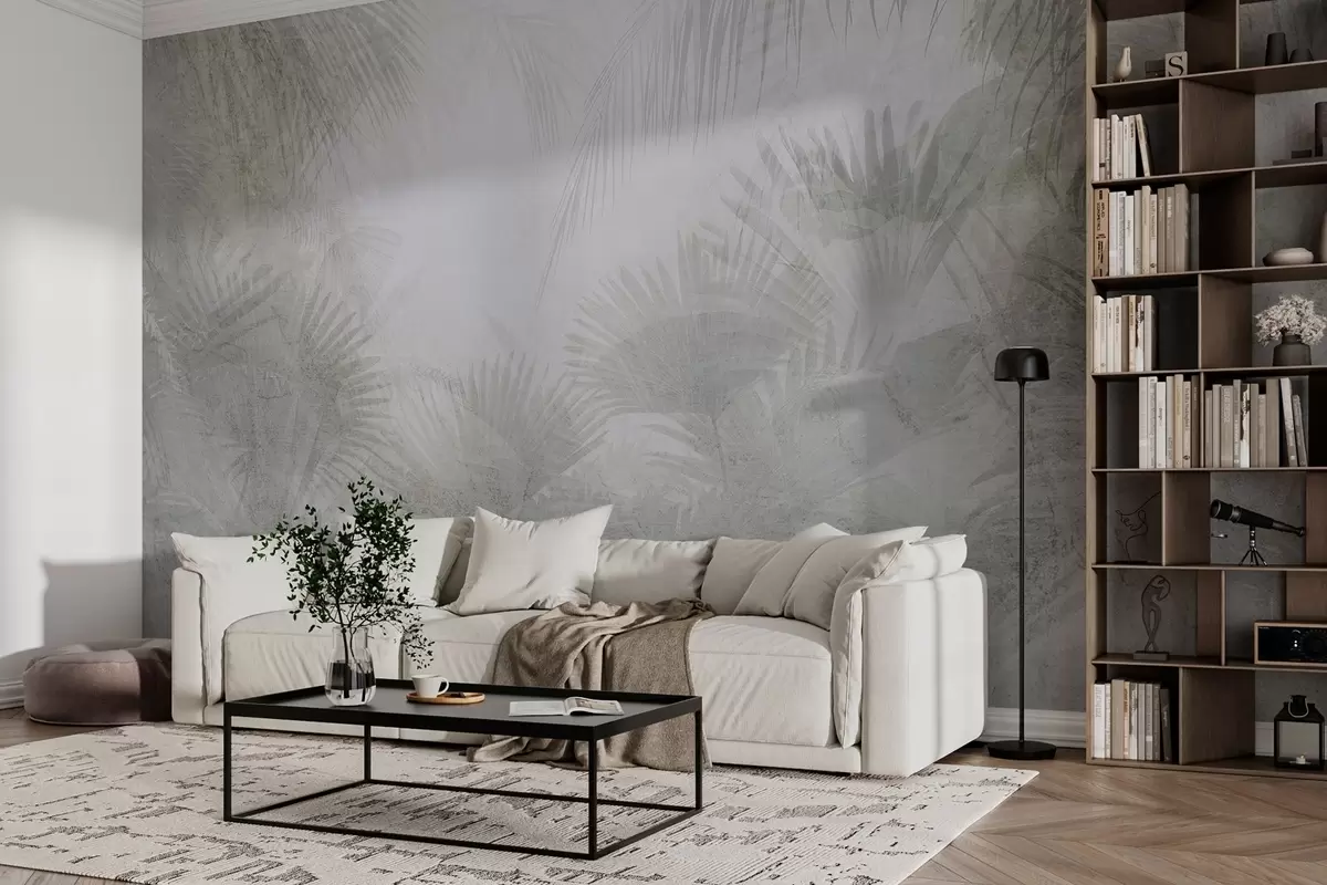 Fotomurales Papel pintado retro tropical texturizado en tonos grises Nr. w03399v1