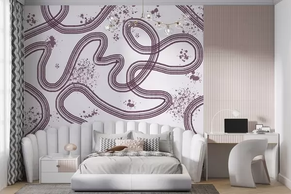 Fotomurales Dibujo lineal, salpicaduras de pintura, minimalismo, color violeta Nr. w03408v1