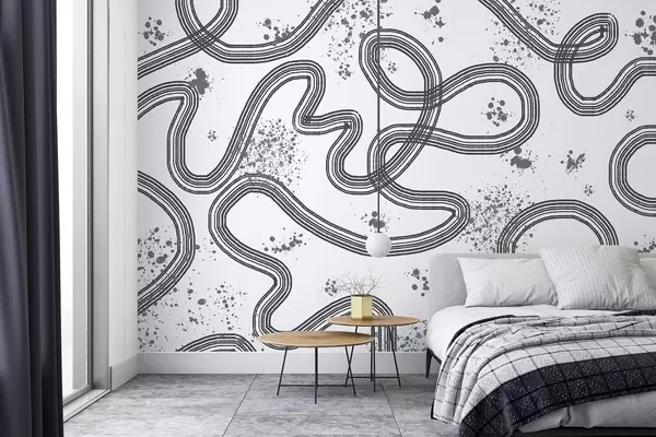 murales de pared Dibujo lineal, salpicaduras de pintura, minimalismo, color gris w03408v2