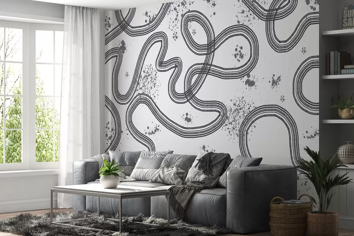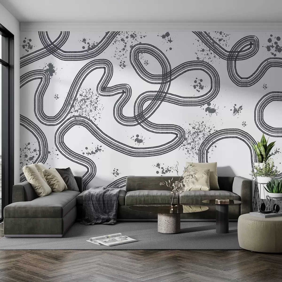 murales de pared Dibujo lineal, salpicaduras de pintura, minimalismo, color gris w03408v2