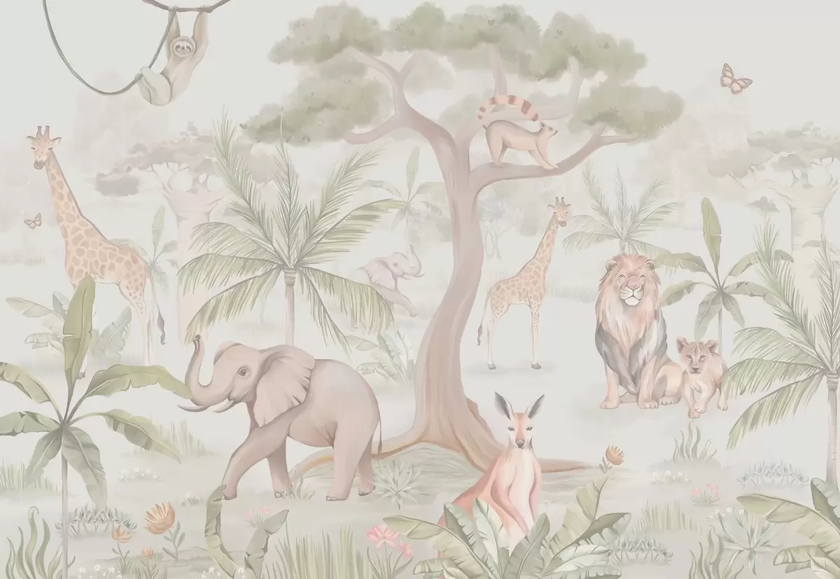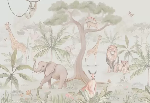Fotomurales Panorama de selva con animales en colores claros Nr. w03444v1