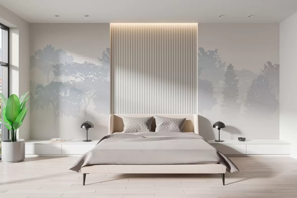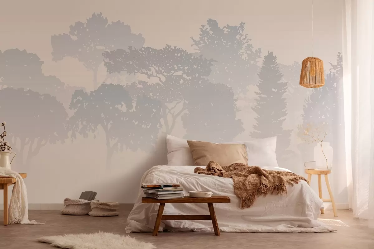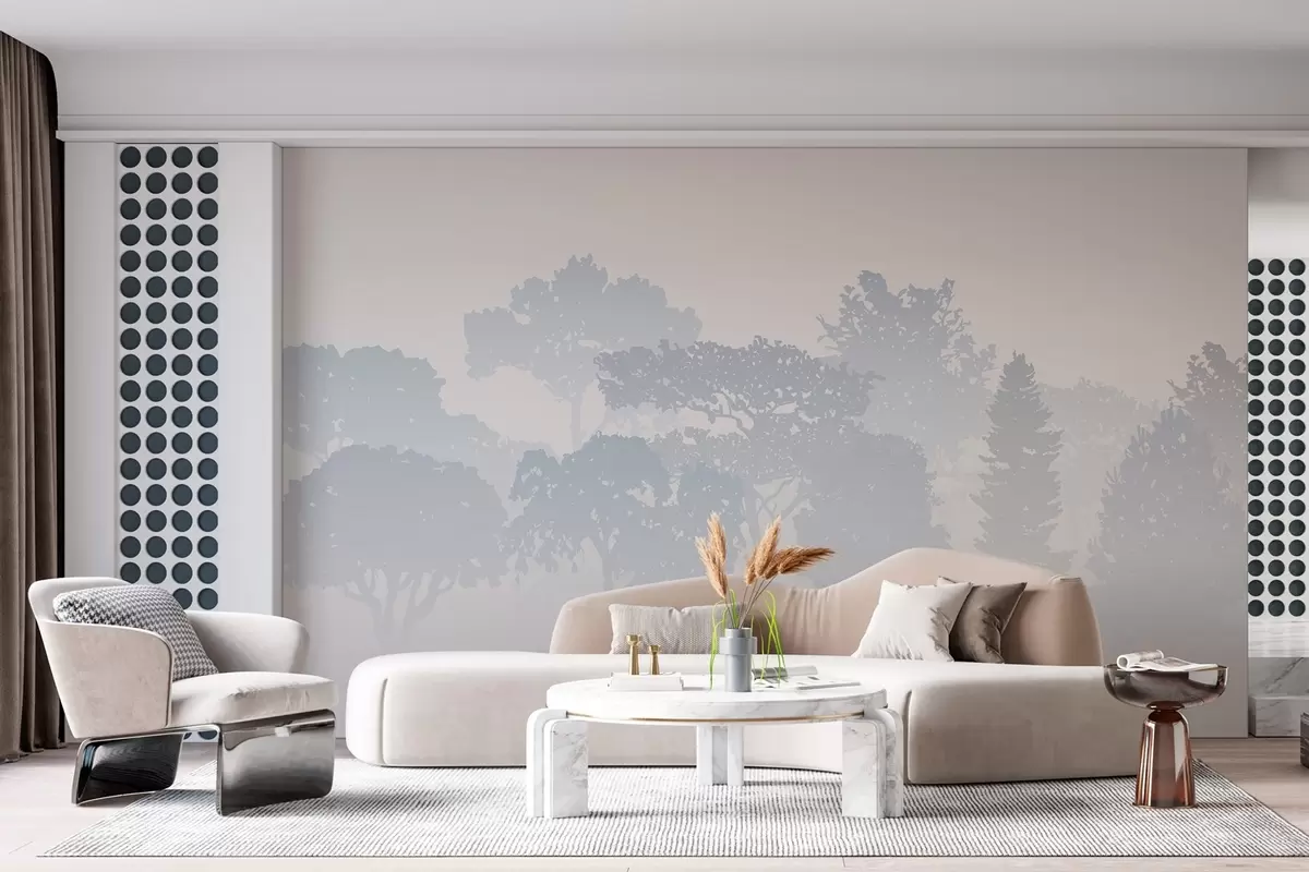 Fotomurales siluetas de árboles en la bruma de la niebla Nr. w03451