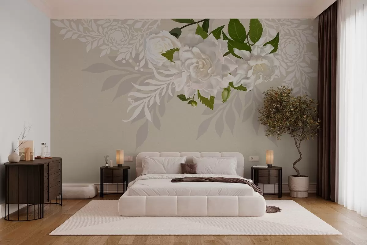 Fotomurales rosas blancas sobre fondo beige Nr. w03453