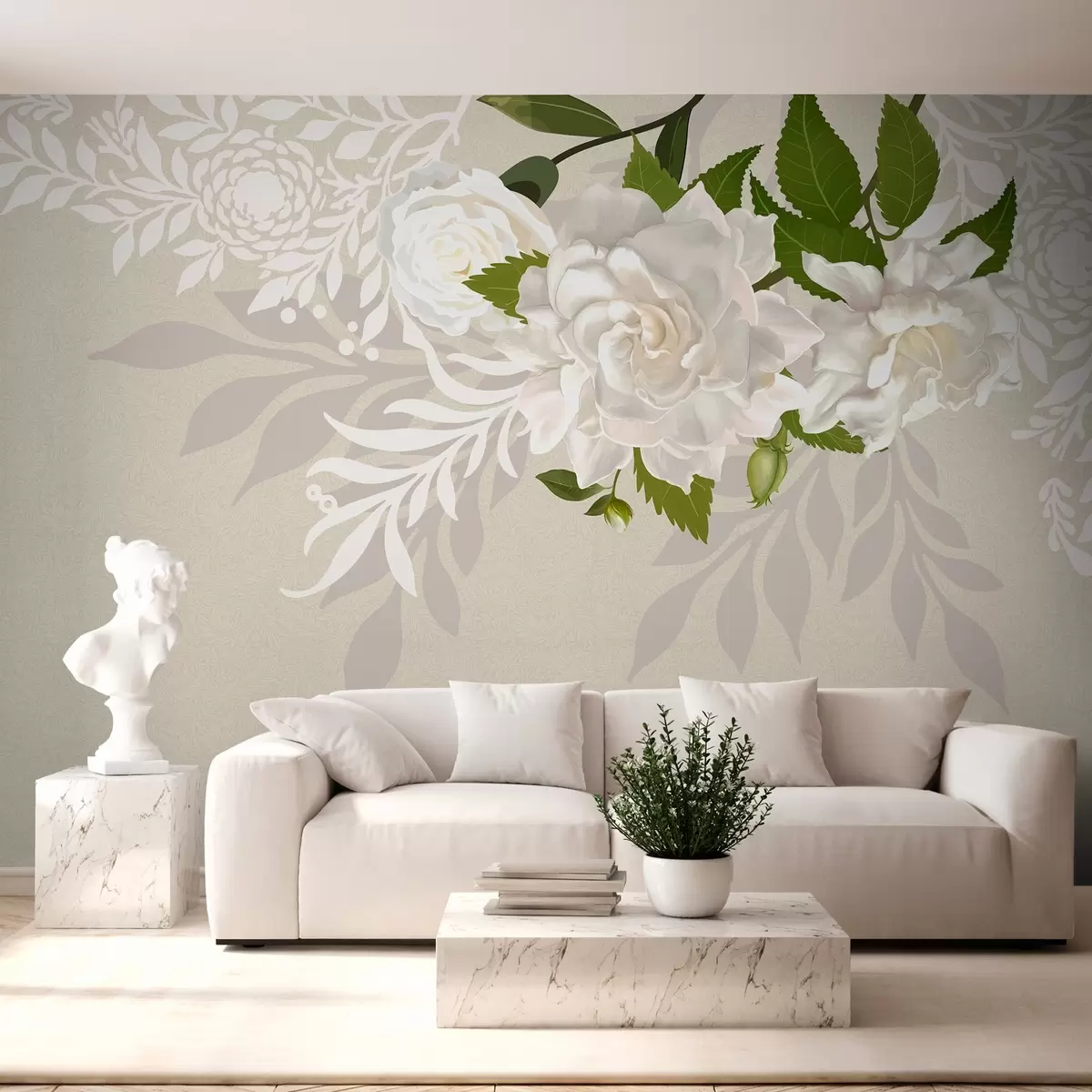 Fotomurales rosas blancas sobre fondo beige Nr. w03453