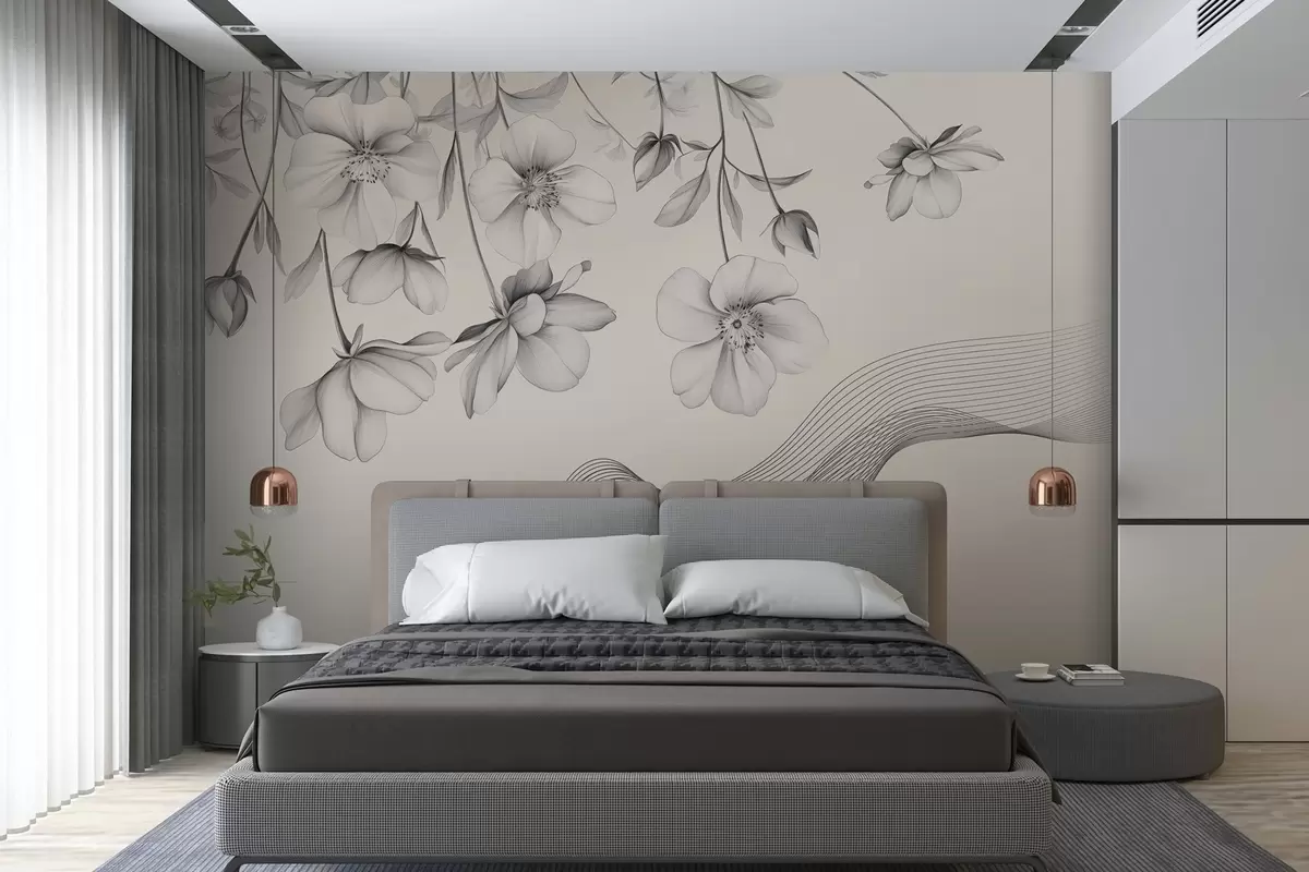 Fotomurales flores y líneas gráficas sobre fondo claro Nr. w03454