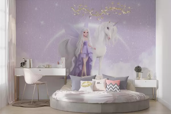 Fotomurales Un hada con un unicornio entre las nubes Nr. w03527