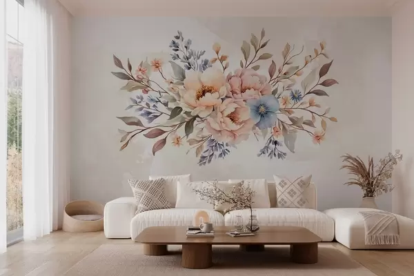 Fotomurales un ramo de flores en estilo acuarela en tonos beige Nr. w03613