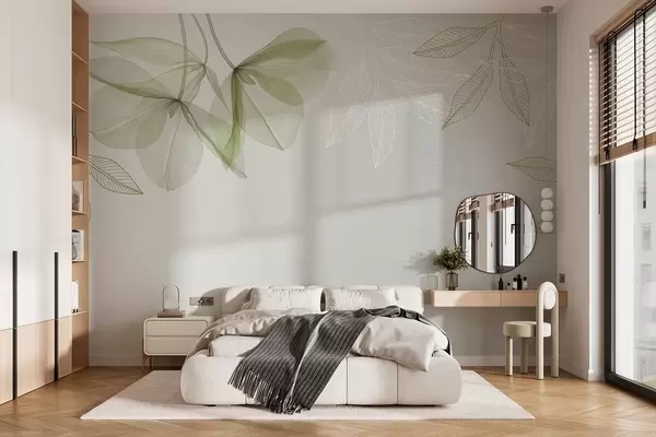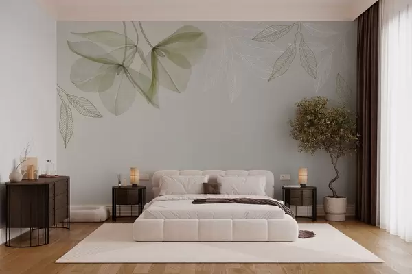 Fotomurales delicadas flores y hojas translúcidas en tonos caqui Nr. w03616v2