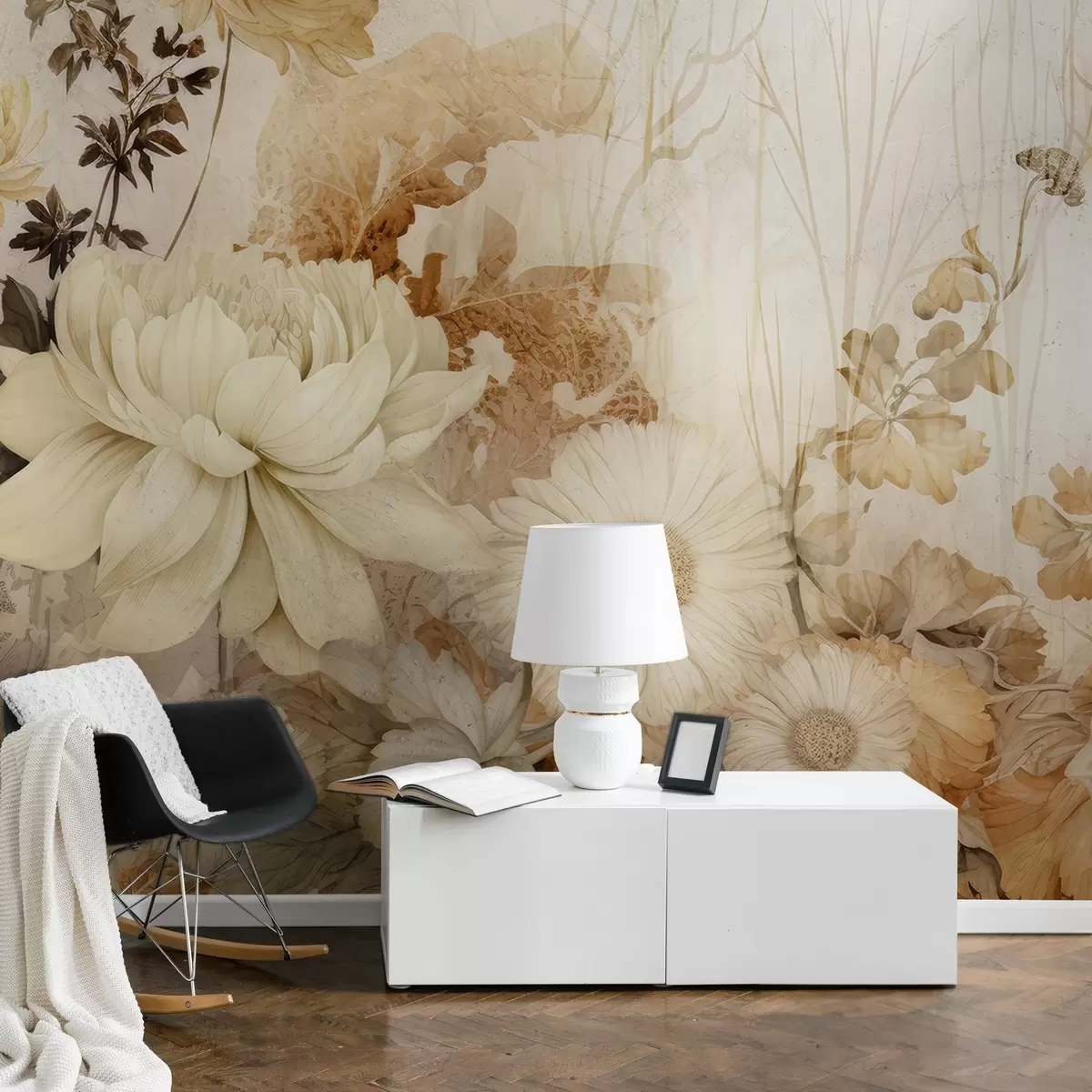 Fotomurales Flores vintage en una vieja pared agrietada Nr. w03654