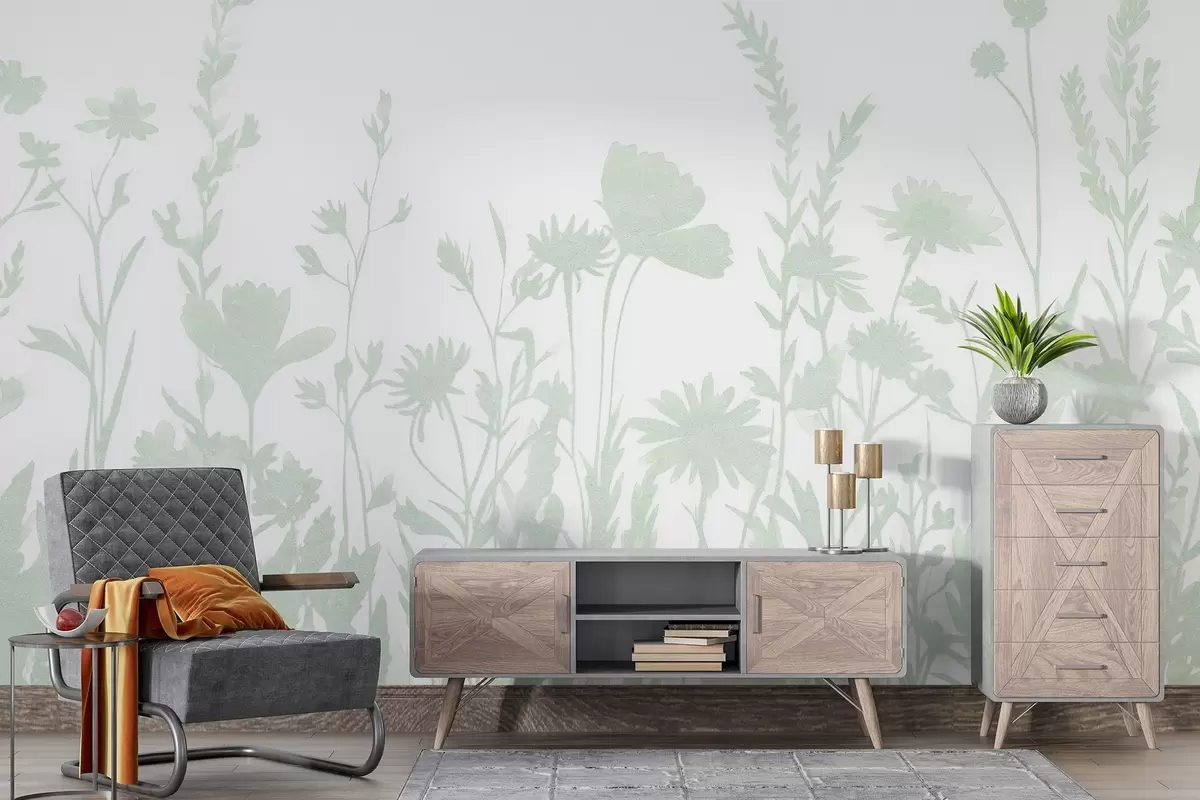 Fotomurales Pradera de verano, rústico, flores, paleta de colores verdes Nr. w03670v3
