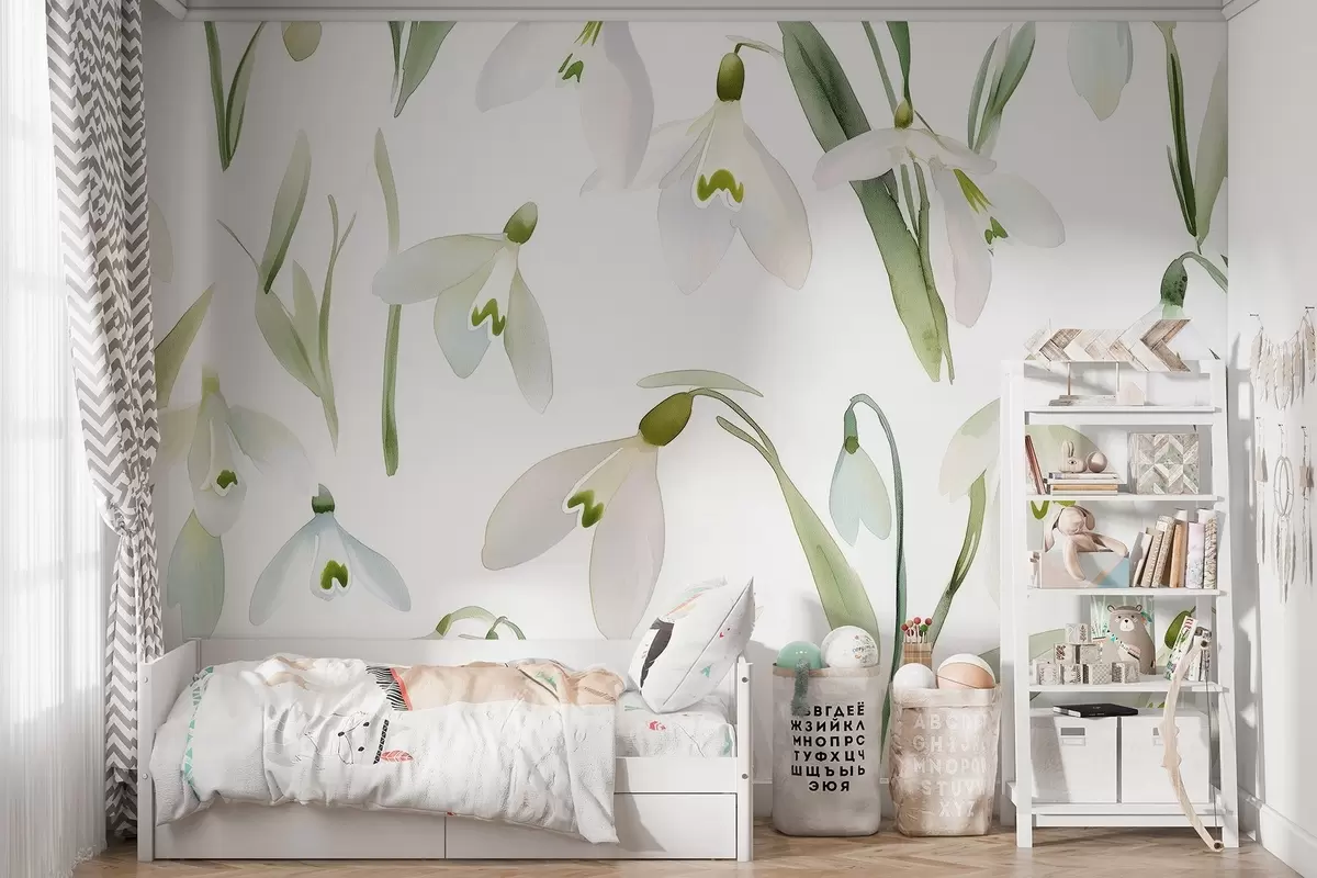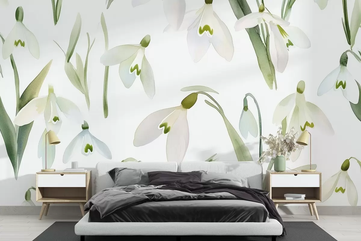 Fotomurales Snowdrops flores en estilo acuarela, colores naturales Nr. w03754