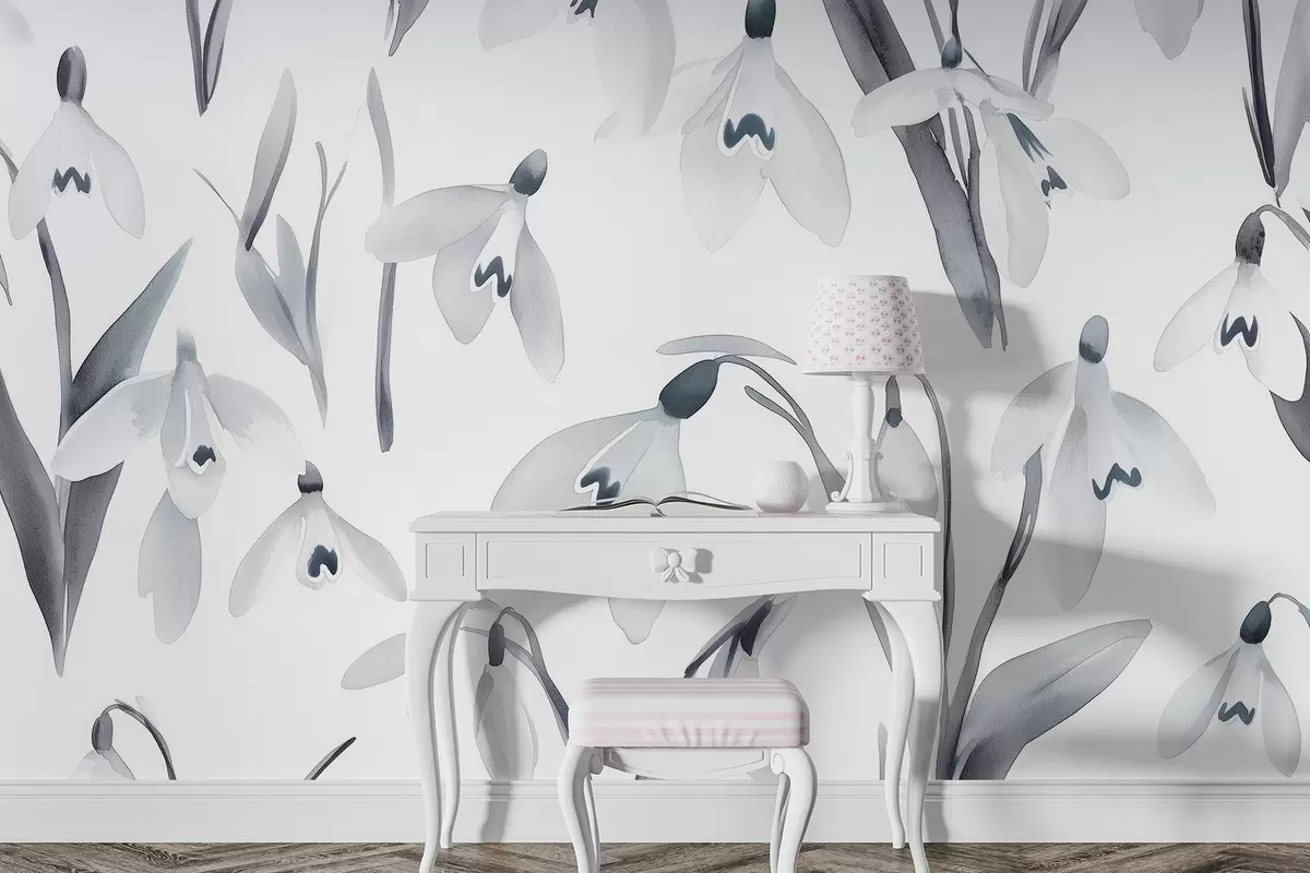 Fotomurales Snowdrops flores en estilo acuarela, colores grises Nr. w03754v1