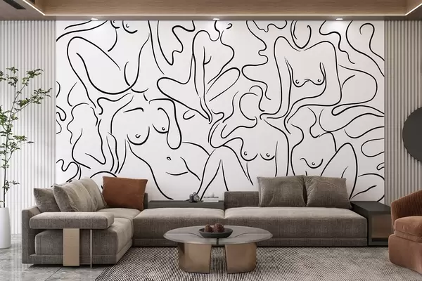 Fotomurales Dibujo lineal siluetas de cuerpos de mujeres, abstracción, color negro Nr. w03755