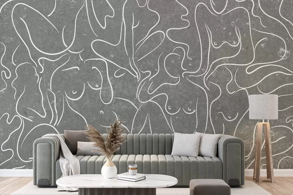 Fotomurales Dibujo lineal siluetas anatómicas, abstracción, fondo gris Nr. w03756v1