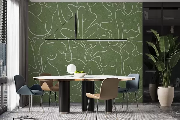 Fotomurales Dibujo lineal siluetas anatómicas, abstracción, fondo verde Nr. w03756v2