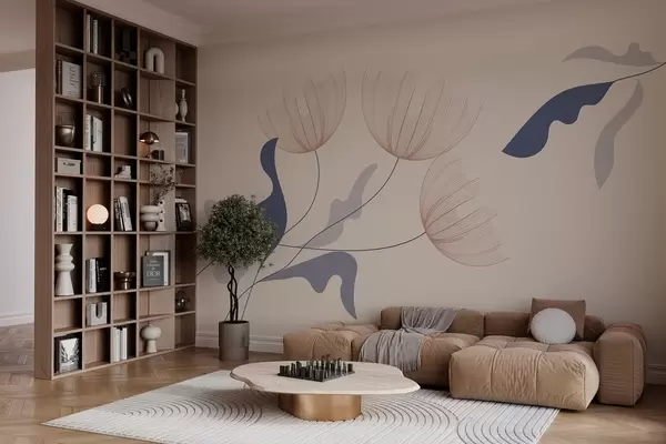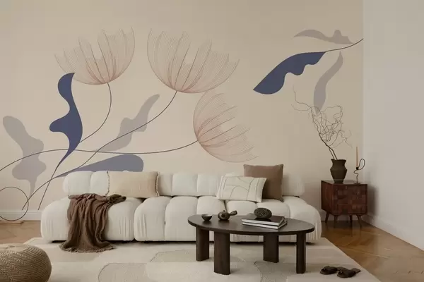 Fotomurales elegantes flores minimalistas en tonos azules sobre fondo beige Nr. w03763